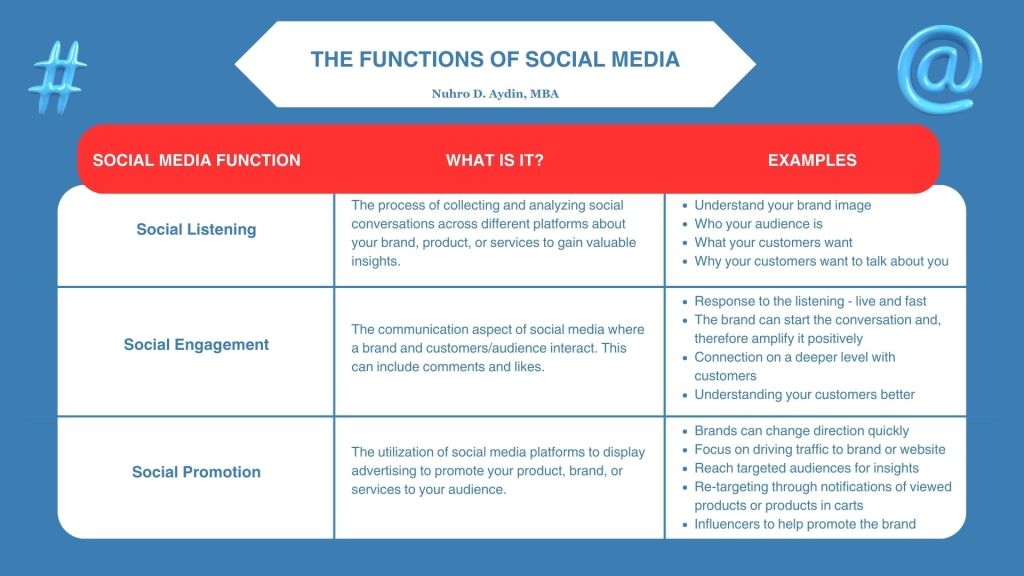 Social media marketing is a powerful tool for brands to leverage the power of social media platforms. Social media has evolved the landscape by enabling brands to communicate with their audience more effectively by connecting on a deeper level. There are three essential functions brands can capitalize on to create and gain value:
