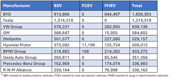 The following table depicts the top 10 Electric Vehicle manufacturers in volume (2022)