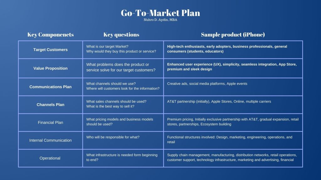 Below is a sample of a simple Go-To-Marketing plan, with a sample of the components and the product.
